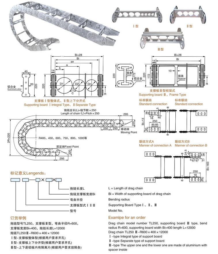 產(chǎn)品名稱:TL250型鋼制拖鏈